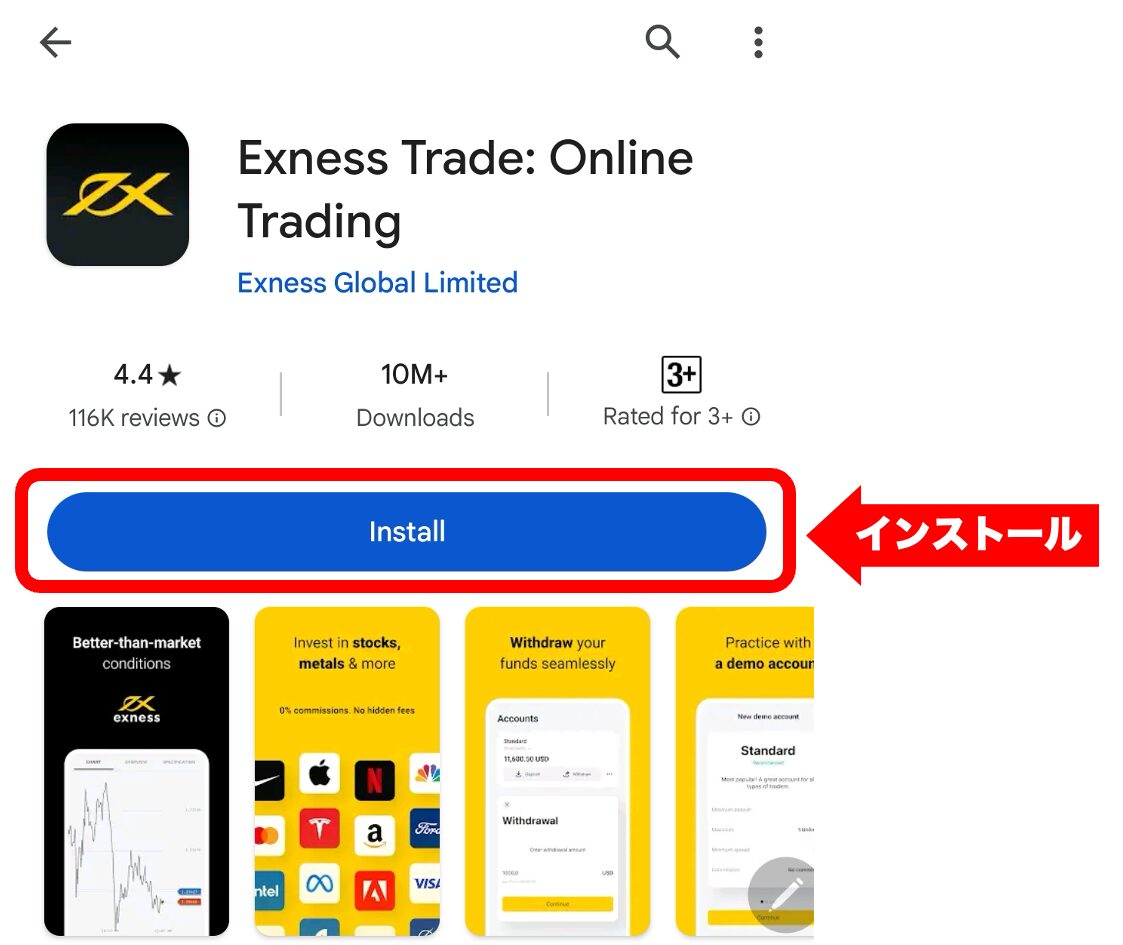 AndroidスマホでExnessアプリの初期設定をする流れを解説していきます!