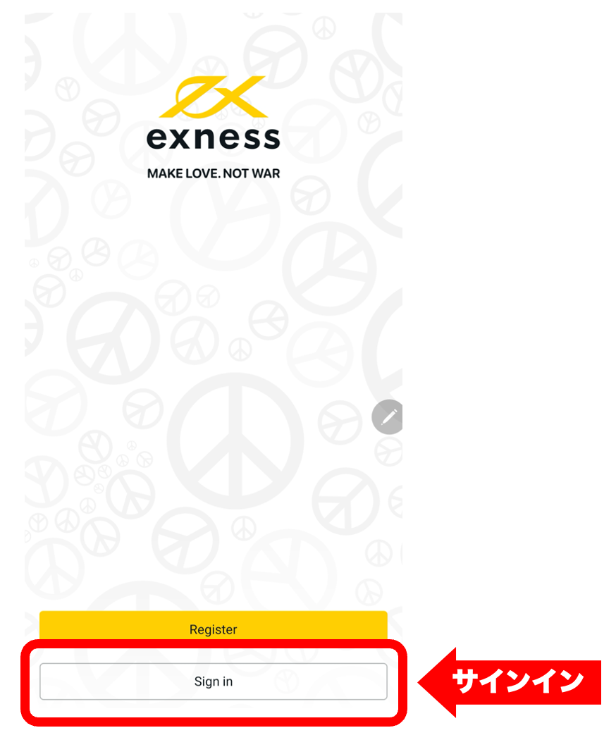 Exnessアプリが開いたら、画面下部にある「Sign in(サインイン)」をタップします。