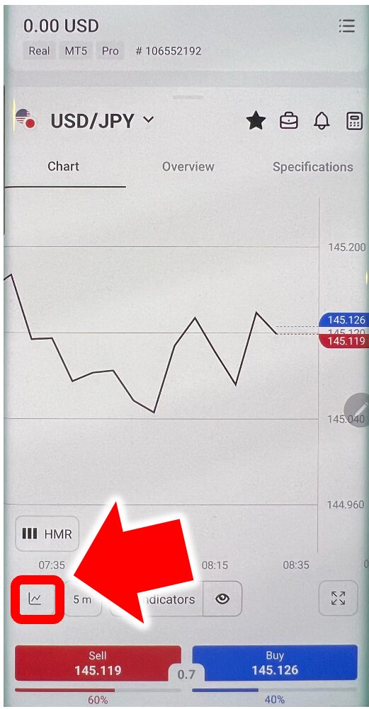 まず画面下に表示されている「売買ボタン」のいずれかをタップします。