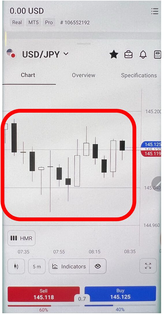 画面左下にある「チャートアイコン」をタップして、「Candles(ローソク足)」選択します。