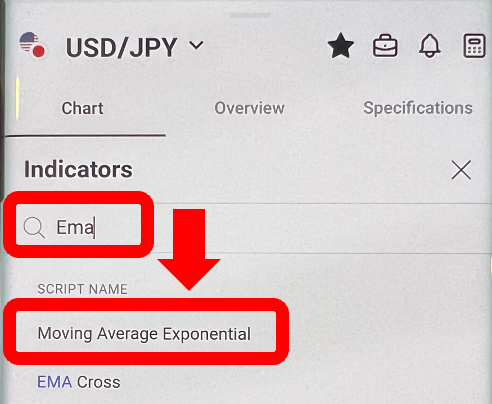 - 日本語だと「EMA(指数平滑移動平均線)」