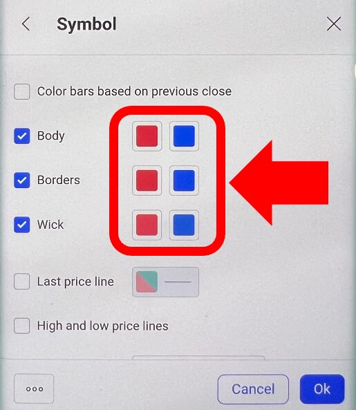 「Symbol(シンボル)」ではローソク足のデザインを変更できます。