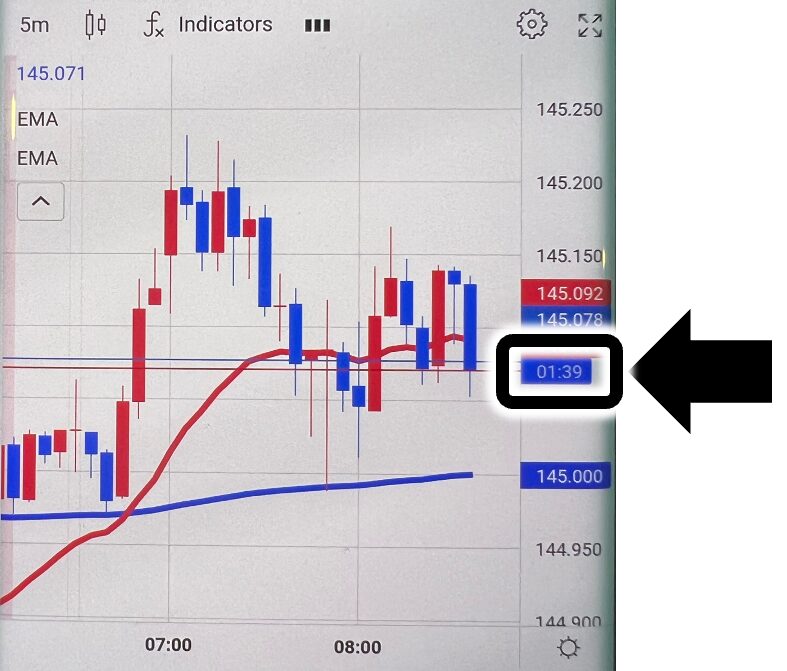 チャート画面右側にローソク足が確定するまでの残り時間が表示されるようになればOKです!
