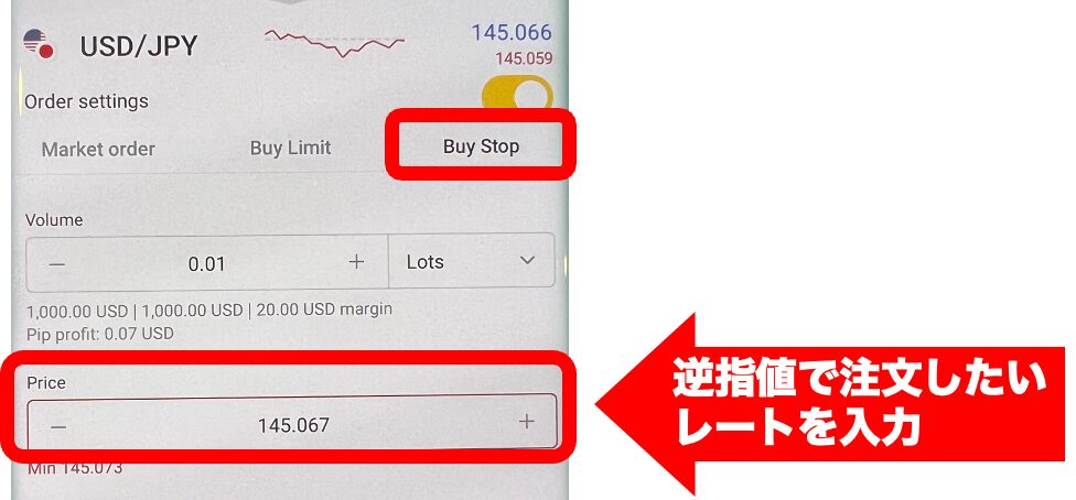 今回は、「逆指値の買い注文」を例に進めていきます。