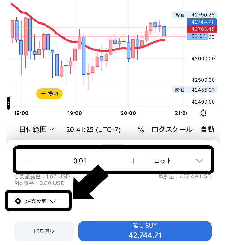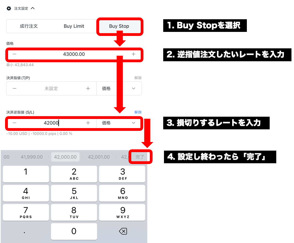 「確定 BUY STOP」をタップすれば、逆指値の買い注文が完了します!