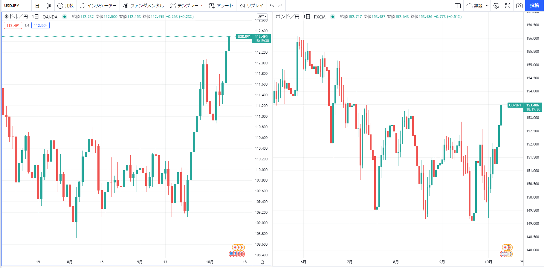 さらにTradingViewを使えば、スマホ・パソコンのどちらでも画面分割して複数チャートを同時に確認することもできます。
