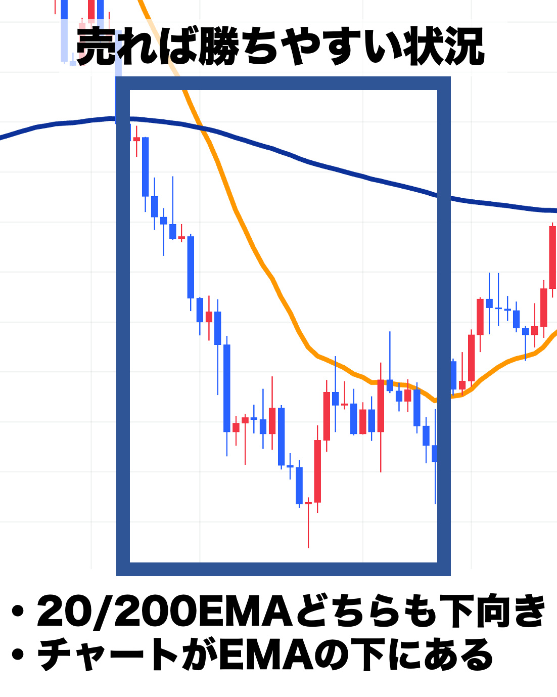 一方で、このような状況であれば、タイミングを見定めて売り注文を出していけば勝率を高められるでしょう。