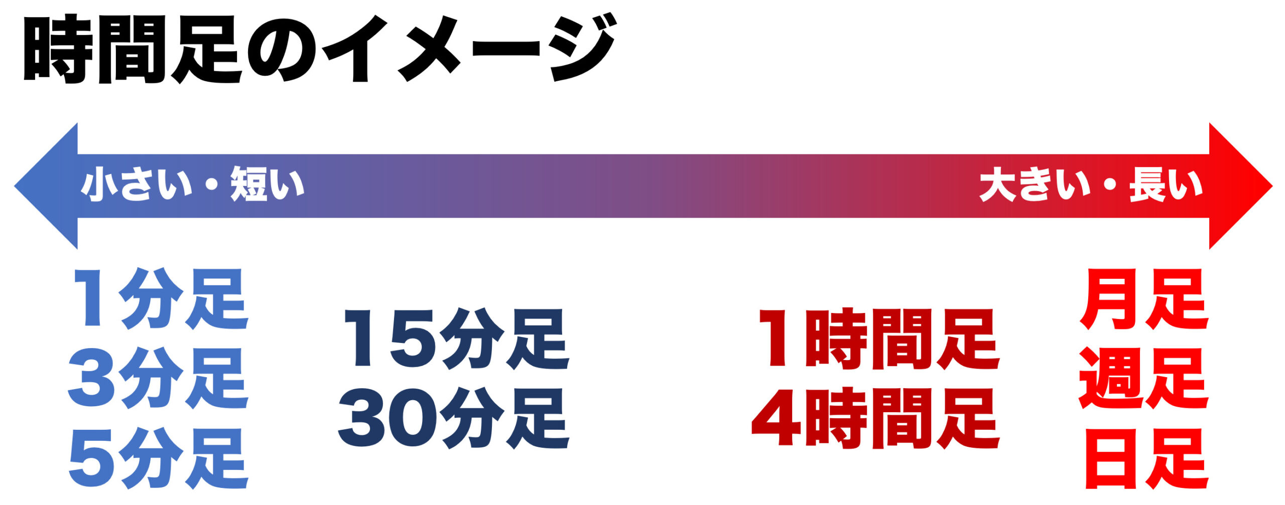 また、「大きい時間足・小さい時間足」のイメージについても説明しておきます。
