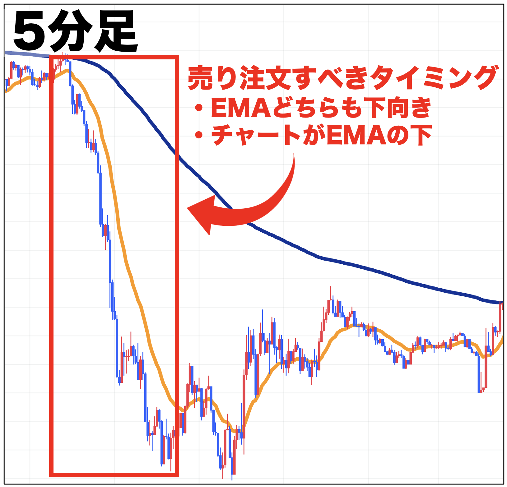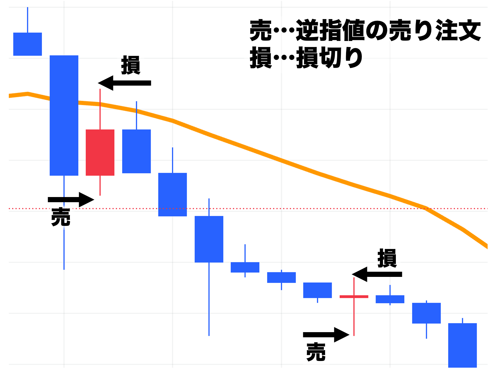 実際のチャートですと、上記のようなタイミングで売り注文ができるイメージです。