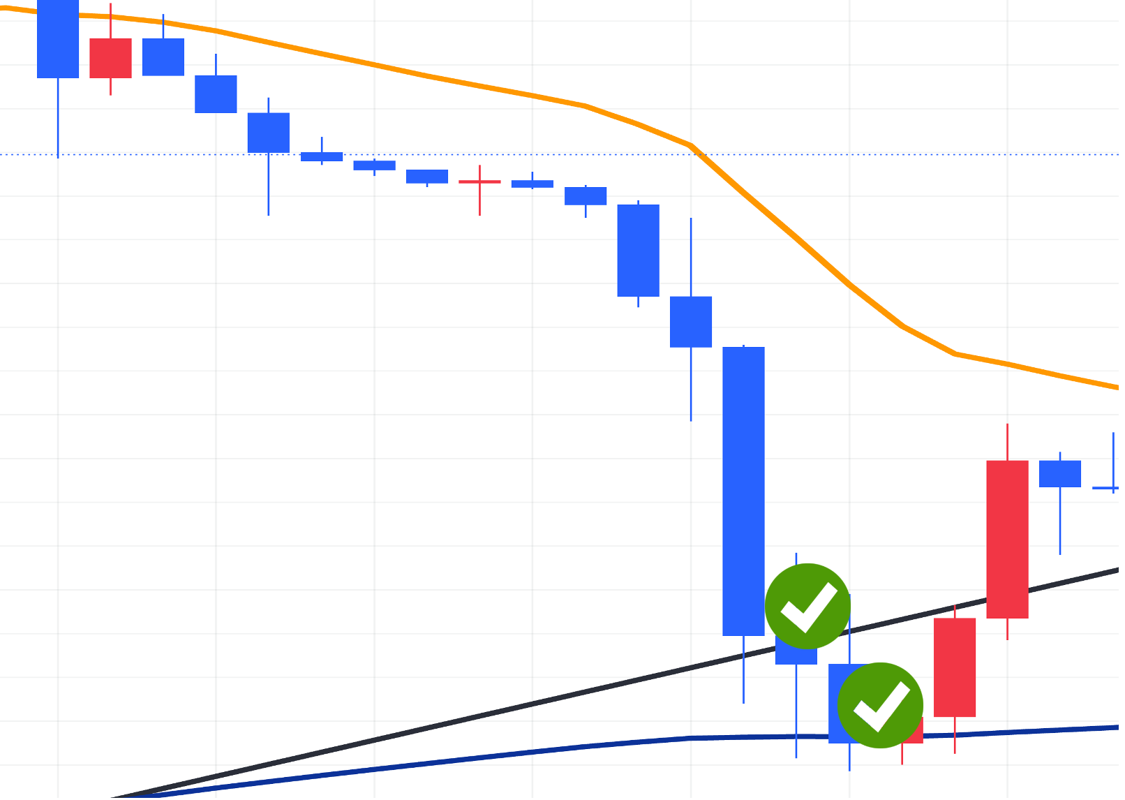 ここまでで取引戦略をご理解いただくために必要な最低限の専門知識をお伝えしたので、続いて実際のチャートを見ながら「買い注文できるタイミング」を見ていきましょう。