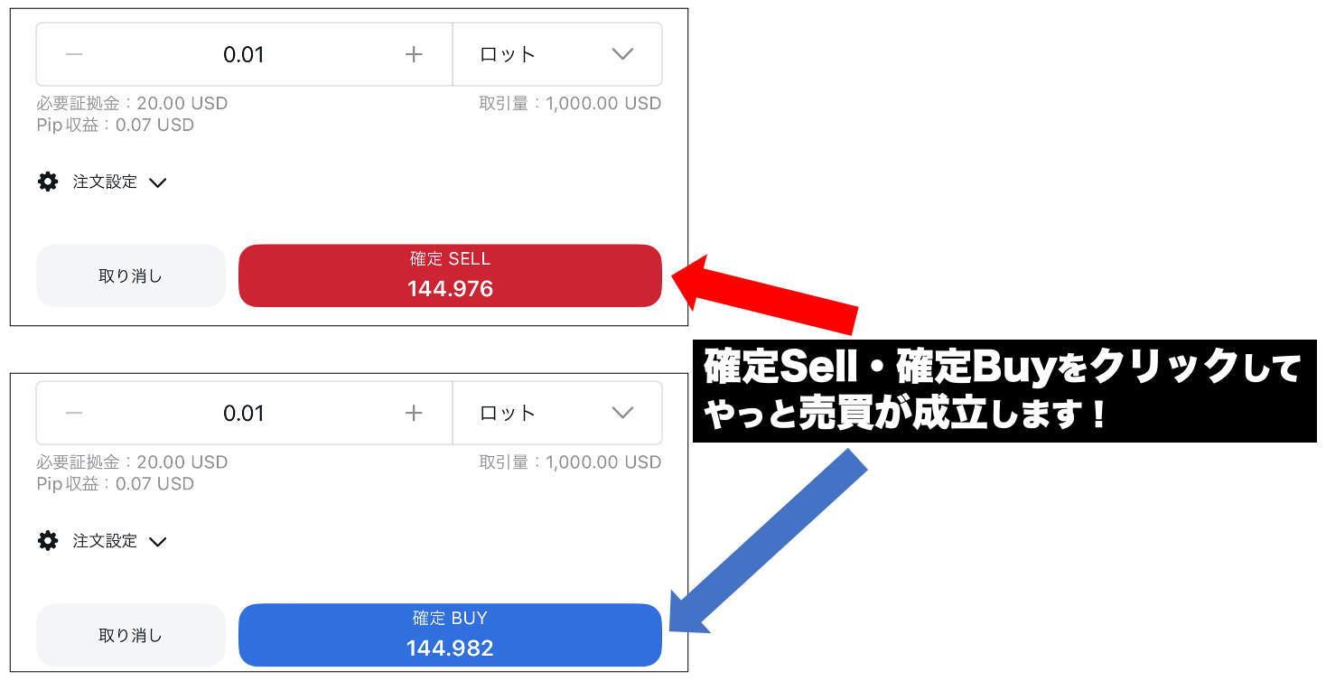 さらに下には「確定SELL」・「確定BUY」というボタンが表示されています。