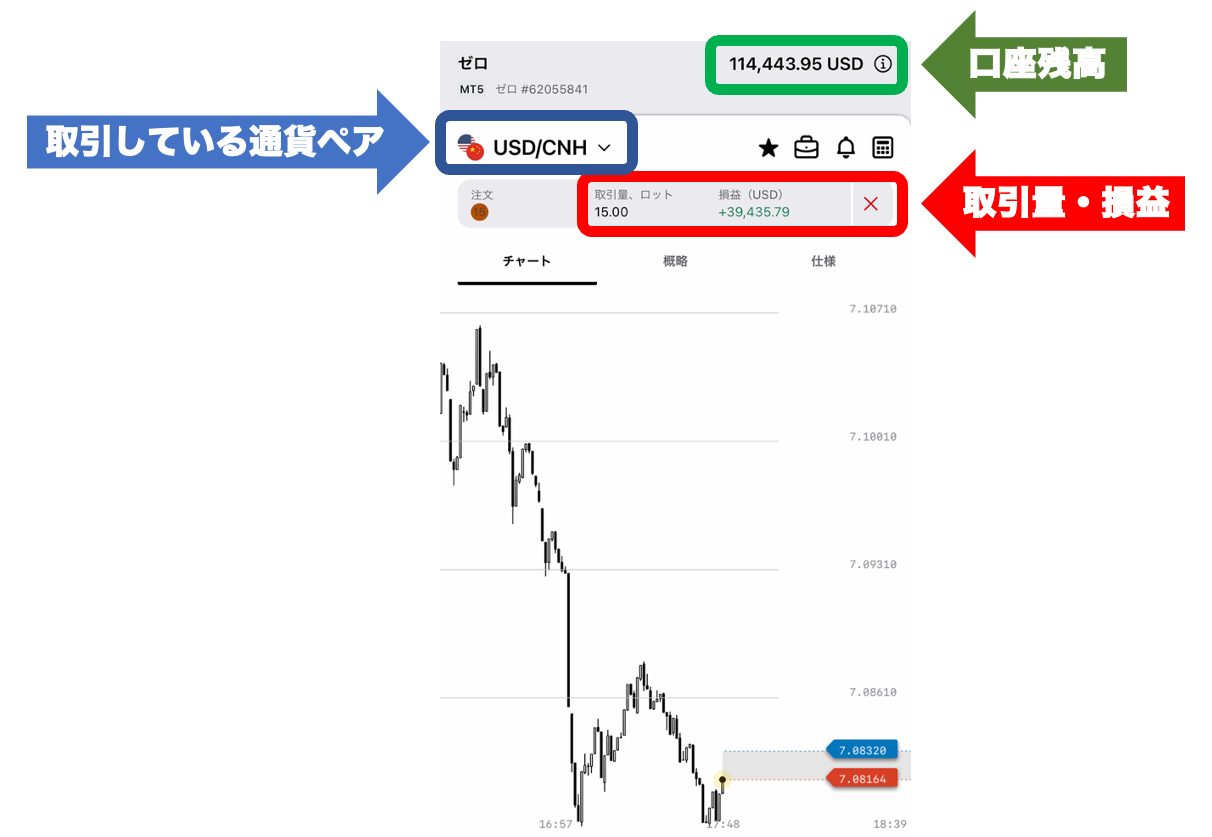 全く同じ値幅の動きであっても、「0.01」で500円の利益が出た場合には「10」でトレードしていれば100倍の50万円の利益が出ることになります。